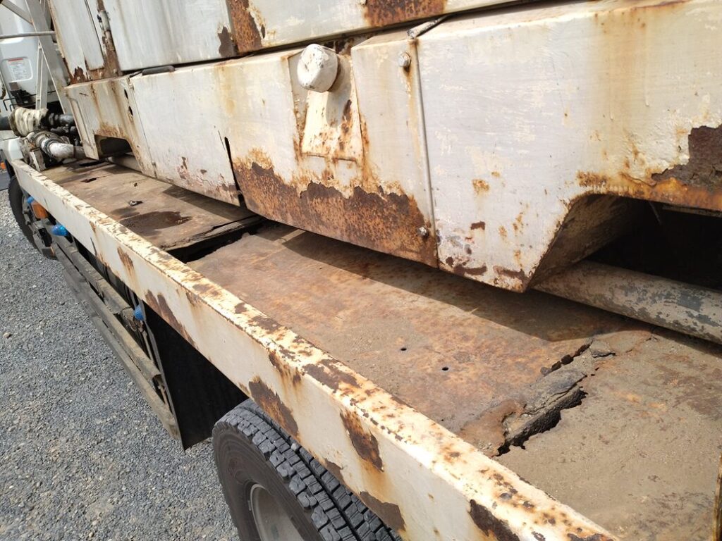 車両の荷台部分も錆で穴が開いています。