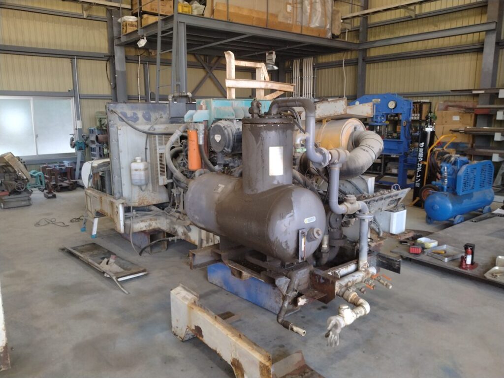 トラック荷台部分からコンプレッサーを下ろし外装部分を外します。