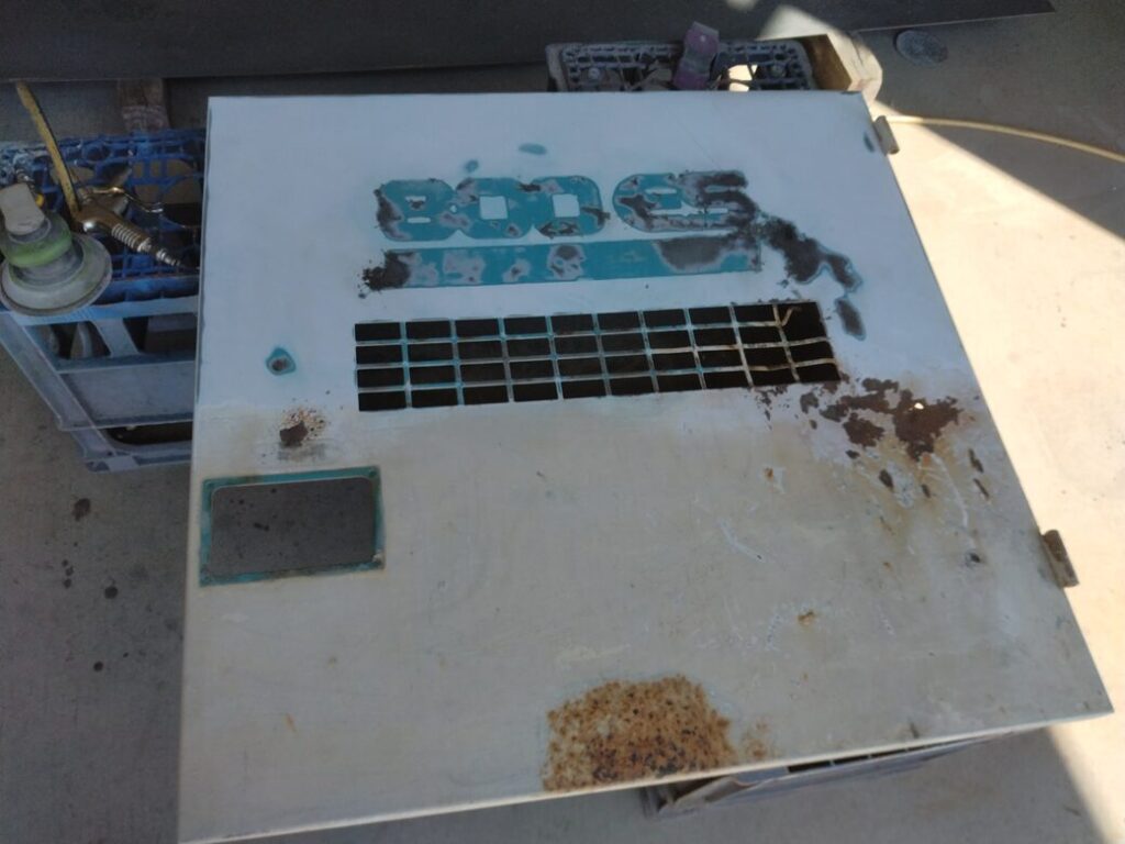 外装部分は錆がはげしく取付部分の歪みやへこみも多く板金作業と塗装が必要です。