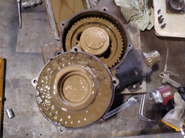 オイルの汚れが酷いですがギヤ等は無事そうです。